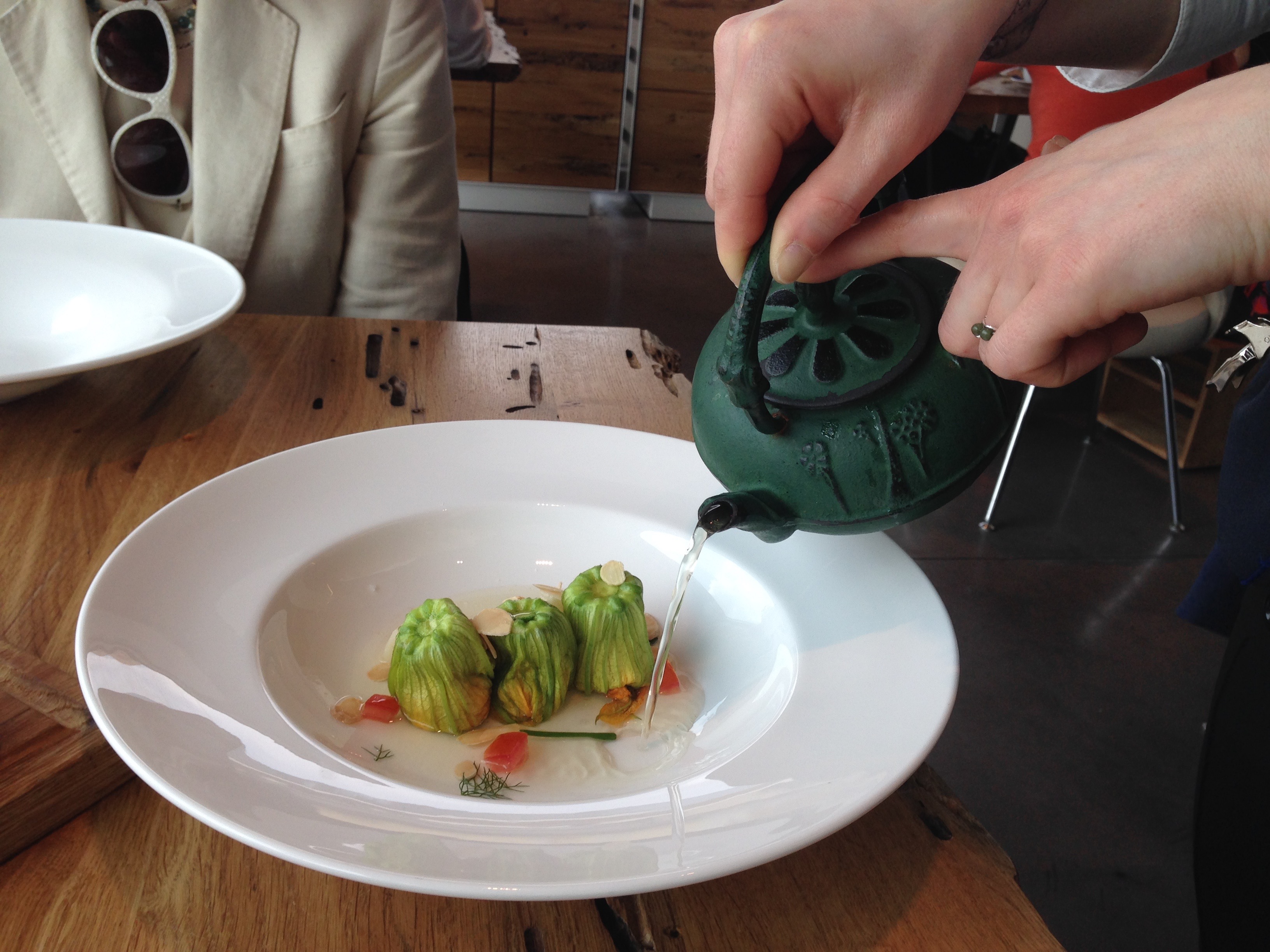 Zucchini flowers stuffed with almond ricotta